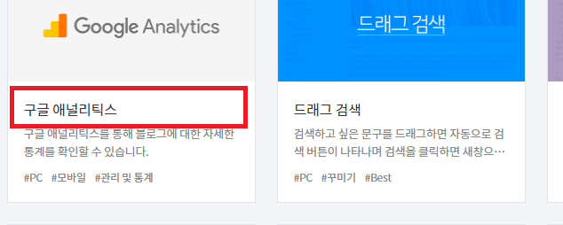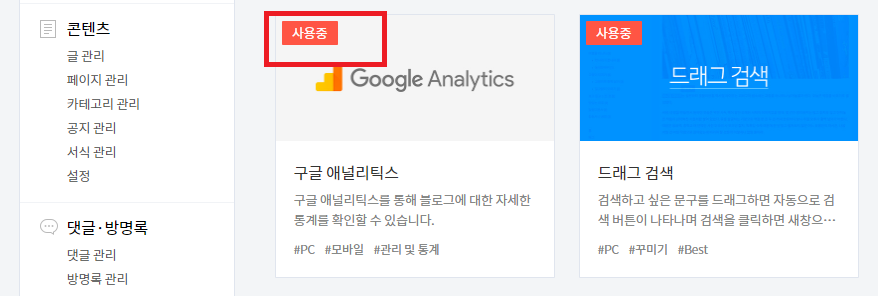 1. 티스토리 블로그 관리자 모드 플러그인에서 구글 애널리틱스를 선택합니다